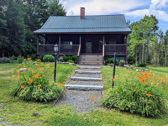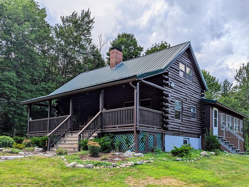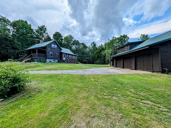 Upon arrival, a long private driveway leads you to this picturesque property, ensuring peace and privacy. The home exudes rustic charm with its log construction and is surrounded by mature trees and beautiful landscaping. Inside, you'll find a cozy living space with a wood stove, perfect for relaxing after a day of outdoor adventures.