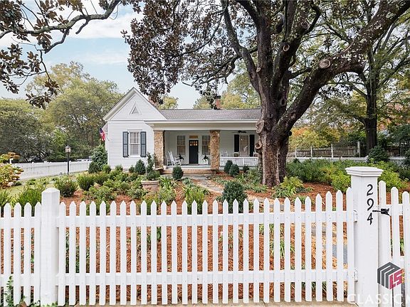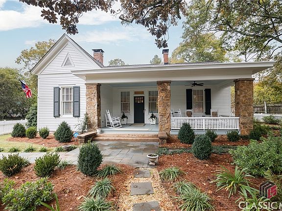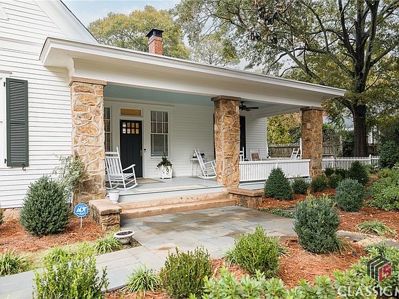 NOTE: Single level Main House has 3 BR/2.5 Baths and 2522 sq/ft and the 2-story Carriage House has 1 BR/1 BA with approx. 900 sq/ft for a total of 4 Bedrooms/3.5 Baths and approx 3422 sq/ft for this property. Beautiful and meticulous restoration in the Cloverhurst-Springdale Historical Neighborhood in Five Points. After entering the spacious front porch for relaxing gatherings, you enter the parlor with 12’+ ceilings and fireplace. The main house has 12’+ and 10’ ceilings. Restoration work that began in 2017 included the creation of a dining room, breakfast area, laundry room and unique bunkbed area with the overall design to create continuity with the architecture of the historic house and neighborhood. There is an additional living room with fireplace and high ceilings having access to the new kitchen. The kitchen features the finest in kitchen appliances with double ovens, under counter microwave drawer, Wolf gas cooktop and KitchenAid French door refrigerator. There is plenty of counter top space for the serious cook in the family. The laundry room is well designed and spacious and offers some flex space if needed. There is plenty of space for a large formal dining room to seat a big group of friends or family. The primary bedroom in the main house has custom bath with shower and boasts of the best design and fine finishes of marble flooring and walls. The powder room also has marble flooring. The second bath is beautifully renovated. In the center of the house is another flex room currently being used a bunk bed area. The entire house is light and bright. An alarm system which includes smoke and carbon monoxide detectors as well as glass breakage alarms. The 2-level Carriage house was created. The first level functions as an indoor/outdoor space including sink, refrigerator and icemaker while the second level features a guest suite including the bedroom, bathroom and ample closet space. The spacious patio area connecting the main house and the carriage is well designed for entertaining. The entire property is fenced and has a remote controlled gate. A spray and drip irrigation system is part of the extensive landscaping. The restoration work was completed in September of 2018 which included rewiring of older structure, roof replacement, new kitchen, replacement of the HVAC system and installation of new hardwood flooring as well as restoration of the original hardwood floors. History abounds with this home which originally belonged to Judge Hamilton McWhorter and later owned by Robert L. McWhorter who was UGA first All American football player who went on to become a professor of law at UGA and mayor of Athens.