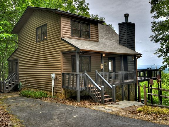STUNNING LONG RANGE MOUNTAIN VIEW CABIN! This 3 Bedroom, 3 Bath Mountain Retreat is the Perfect Place to Unwind! Featuring a Large Kitchen w/Lots of Cabinet Space and Granite Counter Tops, Open to the Great Room & Dining Area w/Hardwood Floors, Gas Log Fireplace & a Wall of Windows that is Set in the Perfect Position to Catch the AMAZING SUNSET VIEWS! Main Floor Bedroom, Bath & Laundry Area. Upstairs Master Suite has Upgraded Bath w/Slate Floors, Tile Shower and Double Vanity! Terrace Level w/Guest Bedroom, Bath & Den/Media Room w/Gas Log Fire Place! Extra Spacious Screened Porch w/Exterior Wood Fireplace! Under 5 Miles to Downtown Blue Ridge, All Paved Access! Would Make a Perfect Rental Investment or a Full Time Mountain Escape!!!