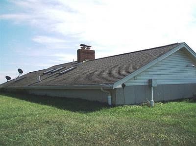 Earth Berm brick ranch on 10 acres with 30 x 40 pole barn with concrete floor. Nice Ridge Top setting with rolling pasture. Gas heat with wood furnace back up. 3 skylights, public water on Street.
