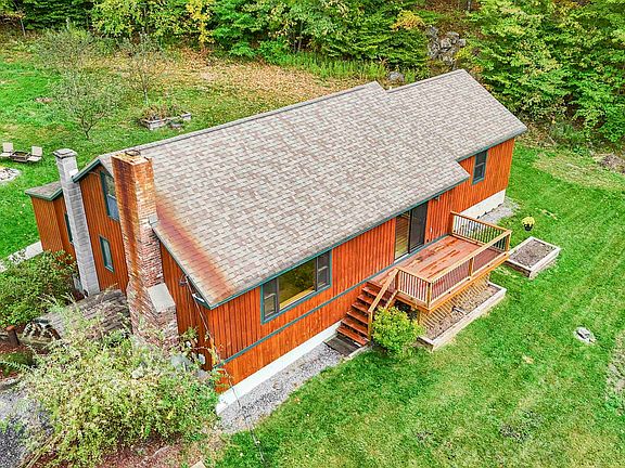 Literally my favorite road in Shaftsbury, you'll soak up the most spectacular vistas of farms and mountains every day. Nestled in the woods with privacy, this property is lovable and charming. Both decks have been rebuilt, so you can watch the sunset from the front and entertain out back. Outdoor amenities include a new workshop (insulated/powered), kid's playset, firepit, raised garden beds, chicken coop, storage shed and wood boiler. With 18 acres of forest, you can cut your own firewood and save thousands on heating costs... or explore timber values for a future harvest. Your first step inside will be the mudroom, then you're warmly welcomed into an open concept that maximizes the floor plan. The eat-in kitchen has soft blue/gray painted cabinets, Formica counters, new stone backsplash, and brick veneer feature wall. Living room brick fireplace with wood stove insert and real pine paneling create an extremely cozy vibe. Both the picture window and slider door have been replaced and bring in natural light. A central staircase separates the office, which could be used for dining, hobbies or reading. Two bedrooms and baths on the main level, including the 2016 primary suite addition with walk-in closet, 3/4 bath, and laundry room. Upstairs are two bonus rooms with low ceilings. Basement has TONS of storage, secondary laundry area with sink, all utilities, and walks out to the driveway. Fiber optic internet so you can work from home or stream movies galore.