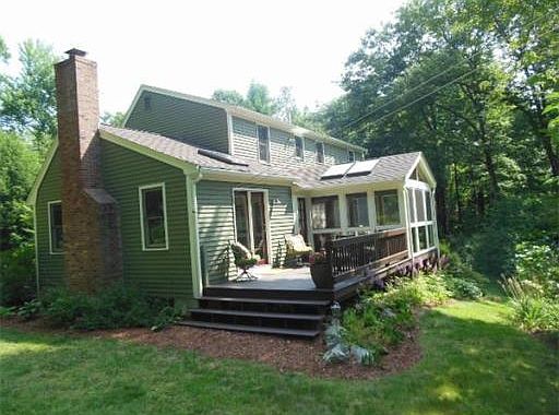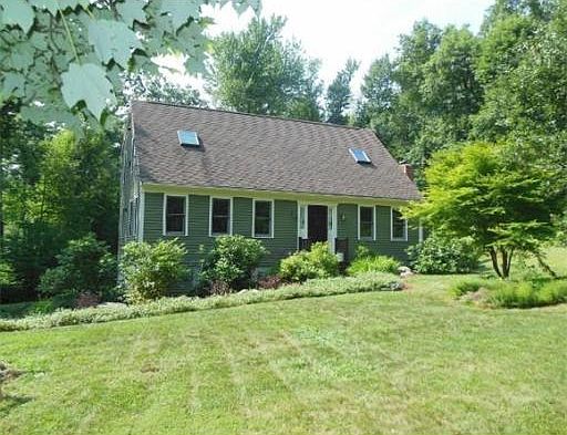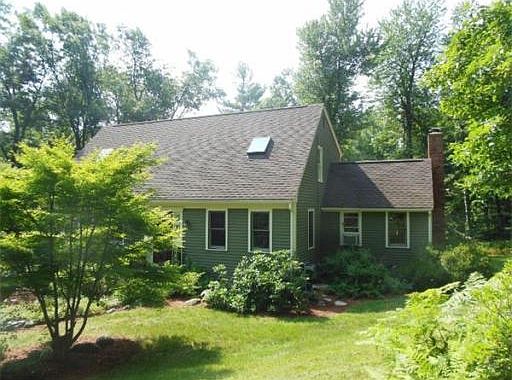 Spectacular oversized Cape Cod nestled on a 6.12 acre private lot. If you are looking for privacy and country living, this is your new home! Home is like new! Large kitchen opens to a sunny, cathedral family room w/patio door to a large deck, gleaming hardwood in kitchen, family room and dining room, separate door from family room opens to 3 season porch w/cathedral ceiling. First floor bedroom with access to full bath, laundry room on 1st floor. Second level has front to back master bedroom with hardwood floor, skylight double closets,and honey moon bath. Two additional large bedrooms w/walk in closet and skylight. Two story tiled foyer with balcony. Oversized 2 car garage w/garage door openers. Private yard with perennials through out. Boarders conservation land. Trails for hiking. Home painted 2 years ago. Recent roof, 3 season porch 15 years old, new carpets in living room and the 2 upstairs bedrooms.