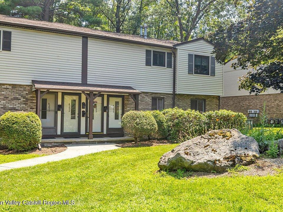 Welcome. Refreshed condo just minutes from Uptown Kingston. This ground floor, end-unit in the manicured Country Village complex is ideal for those seeking easy, low-maintenance living. Step from the entrance hallway into a large living-dining area. Sliding glass doors open to a covered outdoor balcony with wooded views and a handy storage shed.