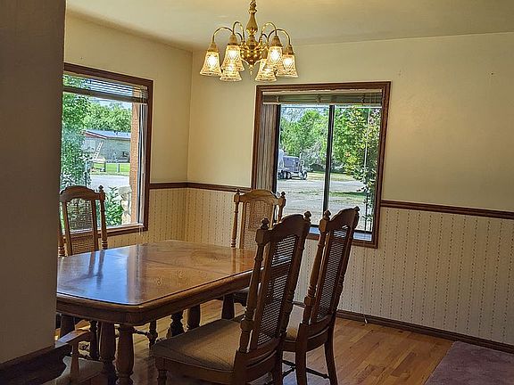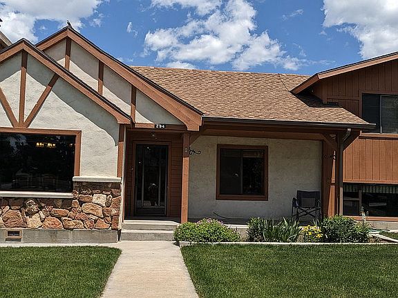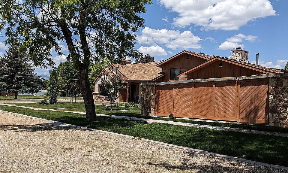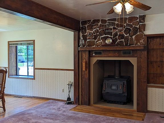 This beautiful home is on a northeast corner lot, facing south. There is unique curb appeal finished with stucco, natural stone with wood trim accents. The well-maintained yard has a sprinkler system hooked to pressurized irrigation water. The yard is fenced on the south with natural rock pillars and wood; the east side has a lilac hedge; north side has a 6' vinyl fence. There is gated access to the backyard with cement parking for trailer. The front of the home has a nice covered porch to enjoy beautiful evenings in a quiet, friendly neighborhood. Major additions and improvements were made to provide for a growing family. The main floor has a large room with dining and living area, lots of natural light, hardwood floor, wood burning stove with natural stone and built in display cabinet. Ample storage available in hall across from office space (which could be a bedroom). A large family bathroom; including large linen closets, double sink, jetted tub, walk-in shower with a changing bench. Recently updated kitchen (2023) and family dining including; granite countertops, new appliances, new wiring (lights) and plumbing. New laminate wood flooring in kitchen/dining, laundry, and hallway. More storage in hallway leading to upstairs living area finished with tongue-and-groove pine throughout with vaulted ceiling. New windows installed in 2024. Area is heated with a white ceramic gas fireplace. Includes family room with built in bookcase, storage closets, and fun play loft for kids; bathroom with shower; large bedroom with two closets. A spiral staircase leads to a family rec room (640 square ft.) which includes a natural stone wood burning fireplace, ceiling beams and new (2024) windows. Sliding door to back yard has been enclosed providing cooler food storage area. Spiral staircase leads to master bedroom with a deep walk-in closet and bath. Also includes a wood burning stove. A sliding door leads to an enclosed deck that has been used as an exercise space. This area also has a bedroom with large south facing windows. The house is heated with 2 newer gas furnaces and cooled with evaporative cooler. The 780 square foot insulated garage is finished with ample shelving and utility sink. The west facing driveway has easy access to kitchen and backyard. A finished 630 square foot garage/shop was built in 2024 with south entrance. There is a backyard storage shed with plenty of locked storage and open shelving with covered parking for riding mower. Garden space includes 5 large grow boxes (24” high) with a sprinkler in each box that can be controlled individually. Enjoy organized gardening with lots of covered storage space and open shelving.