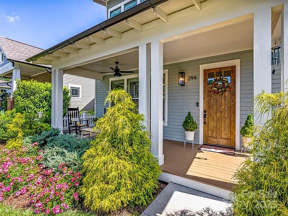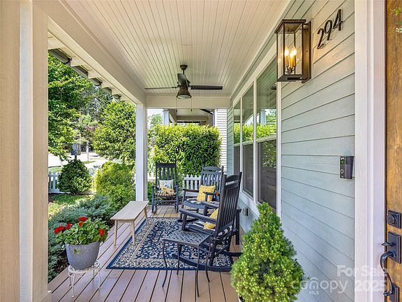 Move-in-ready at the center of what makes Brevard special. Walk to excellent restaurants, the world renowned Brevard Music Center, music venues, a movie theatre and shops, in minutes. Get away to the woods with a walk (or bike) to the Pisgah National Forest through Bracken Mountain Preserve or the city bike trail. Perfectly maintained home with a welcoming front porch, fenced yard and lush landscaping. Open the door to a light-filled open concept great room featuring 10 ft ceilings, a gas log fireplace, built in bookcases and plantation shutters throughout. Gather in the kitchen around the large island open to the dining area. One level living with private, primary bedroom-bath suite with double sinks and a large walk-in shower. Main level includes a convenient half bath and the laundry room. A covered private patio opens to a secret garden and the 2-car garage. Upper level has 2 spacious bedrooms and a full bath. Front bedroom, bright and sunny, with an office nook. 3 zone HVAC.