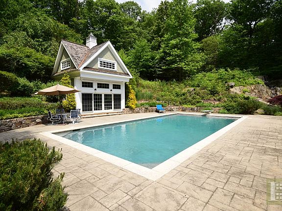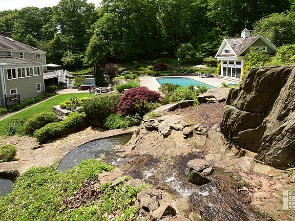 West side location on NY border for commuting ease from this ideal tranquil setting w/generous open floor plan. Entertain inside & out with updated granite kitchen, baths, and refinished hardwood. Expansive pool views with 6,300 square feet, 4-5 bedrooms, 4/2 baths, 4 fireplaces (3 auto light propane), & 4 finished levels including walk out lower level with full bath/fireplace. Resort like grounds with extensive stonework including low maintenance gardens, fencing, heated pool, pool house, hot tub, fire pit, 30' cascading waterfall, 25 zone irrigation, plus outdoor lighting/speaker system. Generator for peace of mind and ease. Extra-deep 3 car garage with additional storage/cedar closets. Electronic gates & Belgian block natural stone drive set the tone for this vacation at home paradise.