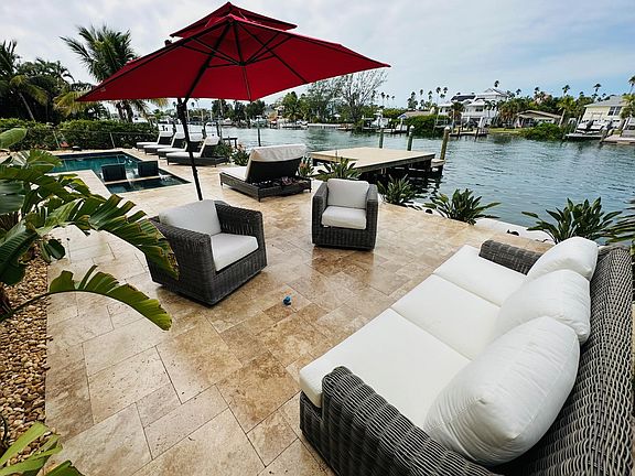 Nestled in the heart of St. Pete Beach's Vina Del Mar, this extraordinary haven is a symphony of luxury and relaxation. The King master bedroom serves as the crown jewel, treating you to a regal vista of the lush backyard, where the heated pool and hot tub beckon under the golden Florida sun. Step onto the balcony, and the intercoastal waters stretch out before you like a living canvas, inviting you to unwind. In the master suite, the walk-in closet offers a sanctuary for your wardrobe, while the opulent master bathroom is a lavish retreat in itself. His and her sinks, a deep soak tub, and indulgent rain shower heads make every morning a spa-like experience. Stepping into the backyard, you're greeted by the piece de resistance: a sprawling, heated pool that shimmers like liquid sapphire. Next to it, a hot tub awaits, a bubbling cauldron of pure relaxation. Grand according glass doors beckon you to the outdoor haven, where a colossal exterior dining table plays host to unforgettable feasts under the open sky. Fire up the BBQ grill, and let the tantalizing aromas waft through the air. Every inch of this paradise is designed for your pleasure, with ample outdoor seating and lounging areas adorned with stylish umbrellas, a lark dock perfect for sun-soaked repose or launching your kayaks and paddleboards into the gentle waters. Inside, the large living room offers a sumptuous view of both the pool and the intercoastal. An 85-inch flat screen TV dominates, ready to deliver cinematic delights. Meanwhile, a spacious dining room table, accommodating up to 10 guests, sets the stage for memorable gatherings. The gourmet chef's kitchen, adorned with stainless steel appliances and a gas range, stands as a culinary sanctuary. A roomy pantry ensures you're stocked with all the essentials, and a large bar is the perfect setting for crafting signature cocktails. Two more bedrooms await: a King guest bedroom with its own en-suite full bathroom and a Queen bedroom with an en-suite full bathroom, all designed to provide comfort and privacy. An office space is available for those who need to blend work with pleasure, and a convenient half bath is at your disposal. For your convenience, a two-car garage and driveway are at your service, and the house is ideally positioned on the intercoastal, just a short walk, bike ride, or golf cart journey away from the picturesque Pass-a-Grille. Please note that a signed contract and identification are required prior to check-in, and the property is monitored by exterior cameras recording audio and video around the clock, ensuring your safety and security during your stay. This property rents for $10,000 a month annually with a $10,000 deposit. First, Last, Deposit, and Move out Clean due at signing. Background Check and Application required. This property rents seasonally and annually. Inquire within for current availability and rates. Seasonal rates are as follows 2023 October $8000 November $9000 December $10000 2024 January $15000 February $15000 March $20000 April $15000 May $8000 June $10000 July $10000 August $9000 September $9000 October $9000 November $9000 December $10000