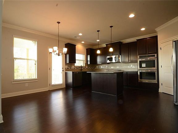 Unfinished basement. Beautiful traditional 2 story w/open foyer. Dinning room w/coffered ceiling and signature trim package. Gourmet kitchen w/double ovens, stainless steel appliances, 42" cabinets, granite countertops and pendant lighting over island. Kitchen opens to 2 story family room w/bowed wall of windows and stacked stone fireplace. Huge master suite w/trey ceiling, big walk-in closet and tile shower. Spacious secondary bedrooms w/vaulted ceiling. One bedroom with full bath on main. Open rail pickets and hardwood floors. Covered deck. Sorry no pets.