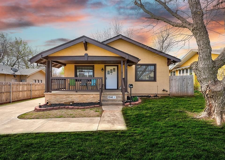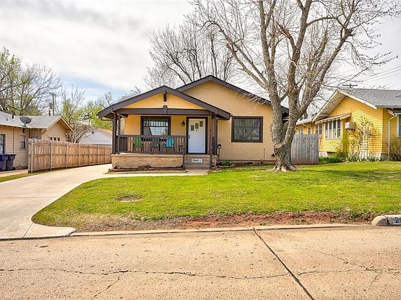 Explore this updated Bungalow in Oklahoma City, strategically positioned in close proximity to shopping centers, dining options, and entertainment venues. This charming residence comprises 3 bedrooms, 1.5 bathrooms, and a 2-car garage. Noteworthy updates encompass newer kitchen cabinets, granite countertops, stainless steel appliances, PVC plumbing, electrical wiring, HVAC system, garage door, fixtures, insulation, driveway, alarm system, neutral paint palette, tiled flooring throughout, and more. Each generously-sized bedroom boasts ample closet space. Relax on the expansive front porch and enjoy the presence of mature trees including a delicious apricot tree. Welcome Home!