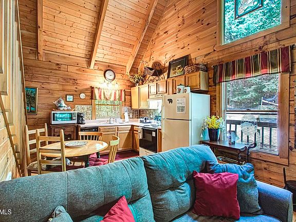This cozy 2BR/1BA log cabin is on .82 of a wooded acre. Such a serene setting, perfect for total relaxation! Great room has cathedral ceiling, all wood interior, wood burning fireplace, kitchen and eating area. Bedroom is on the main level with an attached bath. A new stack washer/dryer is in the bathroom. Everything you need all on 1 floor. The loft area is currently used as a 2nd BR and there is a jetted tub in that area. This cabin has an inviting covered front porch with swing and hot tub. Hours will pass swiftly as you swing and listen to the birds, just wonderful. HVAC is only 4 yrs old and the dishwasher is new. Paved roads all the way. Just a 10 min drive back to the Parkway in Pigeon Forge.