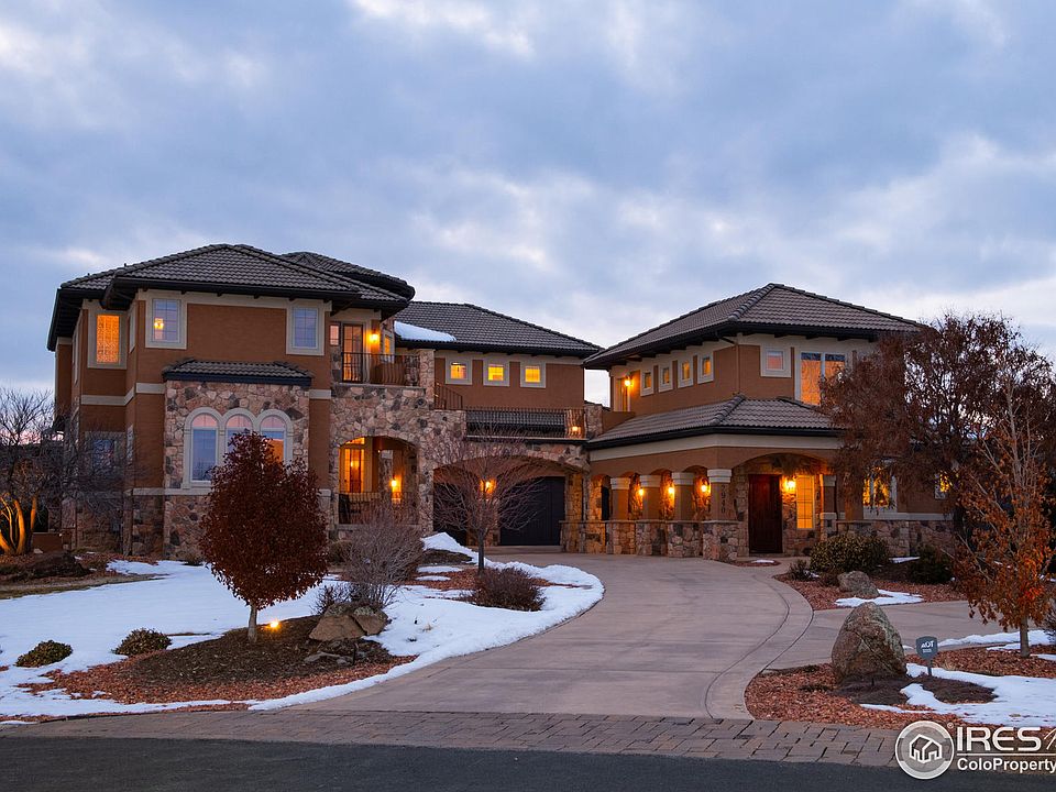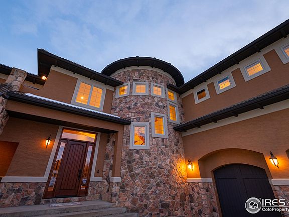 Upon arriving home to your custom 6,000+ sq ft Tuscan Villa, you will instantly fall in love with the long drive & courtyard entrance. Located in the heart of the highly sought after Spruce Meadows neighborhood, this 2 acre+ lot boasts serene landscape & scenery & option for a 2 horse property. Whether your heart is set on entertaining on the large patio or a quiet night for two on the private 2nd story balcony, this well thought-out design provides endless areas to relax & take in the beautiful views of the flatirons. Step inside & prepare to be welcomed by an open & vaulted plan featuring a grand staircase. Formal dining & private office suite, are steps away from the gourmet kitchen. Upstairs you will find an oversized master suite w/ direct mountain views. Three additional bedrooms in the main house as well as a separate private cottage guest home. Step into the custom finished basement, including an additional guest suite, fully equipped bar & entertaining area.