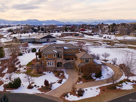 Upon arriving home to your custom 6,000+ sq ft Tuscan Villa, you will instantly fall in love with the long drive & courtyard entrance. Located in the heart of the highly sought after Spruce Meadows neighborhood, this 2 acre+ lot boasts serene landscape & scenery & option for a 2 horse property. Whether your heart is set on entertaining on the large patio or a quiet night for two on the private 2nd story balcony, this well thought-out design provides endless areas to relax & take in the beautiful views of the flatirons. Step inside & prepare to be welcomed by an open & vaulted plan featuring a grand staircase. Formal dining & private office suite, are steps away from the gourmet kitchen. Upstairs you will find an oversized master suite w/ direct mountain views. Three additional bedrooms in the main house as well as a separate private cottage guest home. Step into the custom finished basement, including an additional guest suite, fully equipped bar & entertaining area.