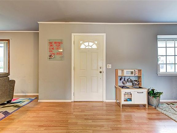 Spacious 2 bed, 2 bath home with beautifully remodeled kitchen & bathroom! Upon entering the home, you will find yourself walking into a spacious & cozy living area. The formal dining area offers a breakfast bar for additional eating space, large window, and upgraded light fixture. The kitchen features exposed shelving, upgraded backsplash, modern light fixture, and double doors leading to the back yard. The large master bedroom offers a ceiling fan, a window, and newly remodeled master bathroom. The master bath features contemporary light fixtures & mirror, gorgeous vanity, white rectangular semi-recessed vitreous china lavatory sink, as well as new tile floors & a fully tiled shower/tub combo. The second bedrooms is well-sized with a spacious closet. This home is conveniently located just minutes away from local shops and fast foods in the heart of OKC. Priced accordingly for you to finish smaller updates the way you'd prefer. Welcome home!