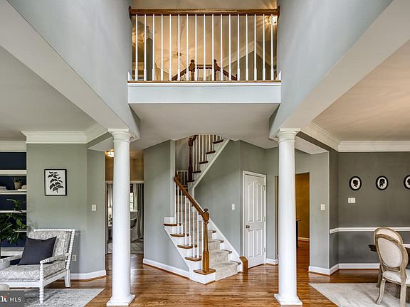Welcome to your dream home, a peaceful retreat that backs to Forest Conservation and is a bird watcher and nature lovers dream! This Custom Williamsburg home offers a 3-car garage on nearly one acre with countless upgrades. Everything about this home is stunning, from the beautiful, level yard and outdoor spaces to the elegant chandeliers and other high-end finishing touches indoors. Entering the home, you will be impressed with the soaring open foyer which showcases columns and a turning central staircase. Gleaming hardwood floors grace the entire main level, with beautiful molding finishes in the foyer, formal living room, dining room, and family room. Built-in shelving has been tastefully added that also enhances these spaces. Relax in the family room that displays 11 ft ceilings, features a wood burning fireplace and enhanced with a wall of oversized windows overlooking the wooded lot. The gourmet kitchen is illuminated by recessed lighting as well as pendants over the expansive island. This beautiful kitchen offers custom inset soft white color cabinets, granite countertops, an induction cooktop, double ovens and an elegant marble backsplash. A huge walk-in pantry completes this wonderful kitchen. If more informal dining is needed, the kitchen opens into a lovely breakfast room with views of the wooded backyard and providing access to the composite deck. An office/music room is conveniently located on this main level. You will fall in love with the vast mudroom which was originally the second bay of a two-car garage. A coat closet, an array of cabinetry and additional countertop space, a sink and secondary refrigerator along with an entire wall of coat hooks complement this remarkable mudroom. The original bay offers a newly coated epoxy floor and can be used as a gym or perfect for a classic car. An oversized two car garage (22 ft deep by 32 ft wide) was added and will not disappoint. Upstairs, the owners suite is spacious yet restful. One unique feature is the three wide steps up to the suite from the entrance to the suite and owners bath. The ceilings are dramatically sloped to enhance the openness of the room. Luxury describes the owners bath, with an air jet soaking tub illuminated by a chandelier, a stunning walk-in double shower, and a seated vanity area, custom cabinetry and marble finishes. Three walk-in closets are another wonderful feature of this owners suite. But it does not end there. A finished room over the garage is located off the owners suite allowing for a secondary office, a den or a workout room. This room is bright and airy and once again takes advantage of the wooded retreat. The dormers add charm and character to this room. Three additional large bedrooms, a nicely appointed bathroom, and a large laundry room (that can be converted into a third upstairs bathroom) complete the upper level. The basement is beautifully finished providing a spacious recreation room with a gas fireplace, a full bath, a wet bar, and a bonus room that can be used as a 5th bedroom or office. An unfinished portion allows for additional storage space. A backup generator which operates all the major components of the home and a shared septic system maintained by the county are additional bonuses. Access to the backyard is gained from a double-door walkup. The exterior of this home is just as enjoyable as the interior. A composite deck steps down onto brick pavers that lead to a covered porch with a seating area, hot tub, ceiling fans and graced by columns and recessed lighting. The rear yard is an oasis. An adorable shed with landscaping adds to the yards charm. Replacement roof approximately 5 years old and hot water heater is 1 years old.