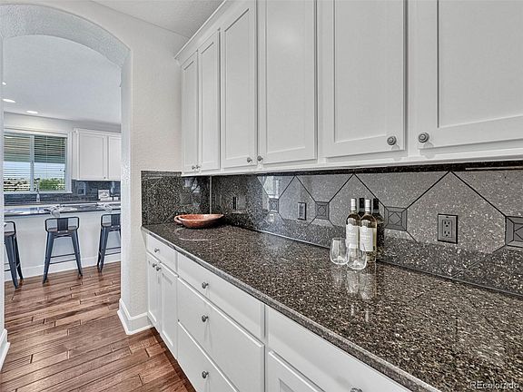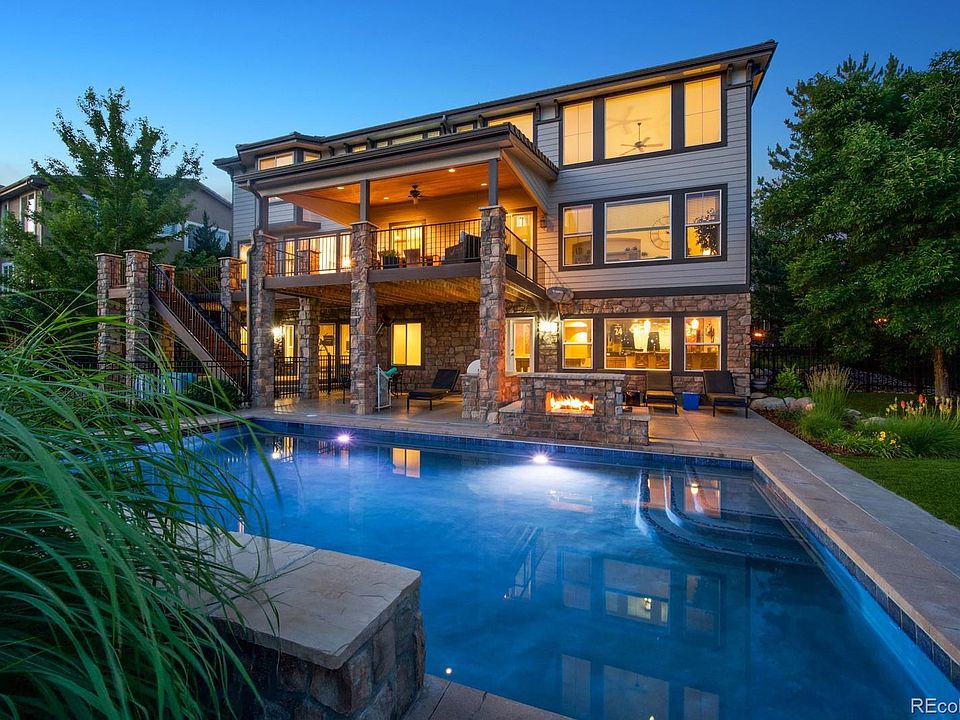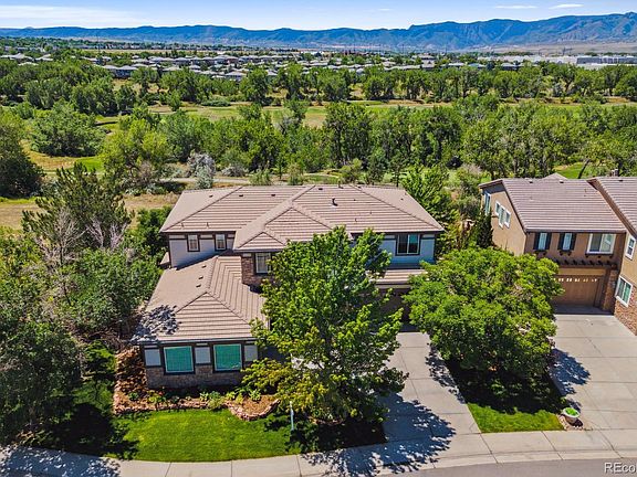 Sitting high on the 12th tee box and overlooking multiple holes and the Highline Canal, this beautiful 6bd/5ba luxury golf course estate in the Highlands Ranch Golf Club is simply stunning. With expansive mountain views, a heated saltwater pool with waterfall/fireplace feature, a partially covered deck, a fenced backyard with low maintenance turf, and a highly updated luxury interior, this beauty will surely make a statement. A formal entrance with dining, office/sitting, and a spacious great room layout provides plenty of first-floor space to entertain inside and out. Huge picture windows and soaring two-story windows make the most of the 180-degree views from the family room with a gas fireplace and built-in entertainment center. A chef’s delight, this spacious kitchen includes quartz counters, white wood cabinetry, stainless appliances including double ovens, and both a breakfast bar and kitchen island. Private office space for the cook is open and light-filled with storage space and is near the walk-in pantry. Upstairs, a master suite takes advantage of the incredible mountain views. The attached bathroom includes a soaking tub, oversized shower, and dual sink vanity. An additional 3 bedrooms and 2 baths are located on the upper level. The entertaining-oriented basement sets the scene for fun movie and game nights and that end-of-the-season party that spills out to the pool. A bar with a fridge, sink, and storage, along with a home gym also faces the views. The guest room is private, and the extra basement bath is handy. Behind-the-scenes features include an electric pool cover offering ease and safety, and a 3-car split oversized garage for toy, car, and storage space. Located minutes from the dining, shopping, and nightlife in Highlands Ranch Town Center and award-winning schools makes this home a fantastic opportunity to live the luxury lifestyle without the fuss. Easy freeway access to 470 and I-25 are nearby.
