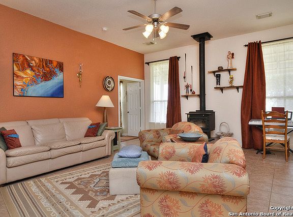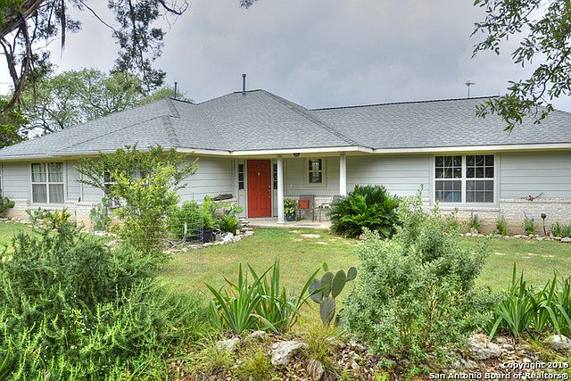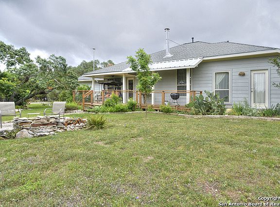 A Little Piece of Heaven Awaits One Lucky Buyer! Located in Rocky Creek Ranch on top of one of the highest peaks with breathtaking Hill Country Views. 1.96 Acres totally fenced has plenty of trees & lots of privacy. Lovingly cared for this adorable 3 bedroom 2 bath has tile & vinyl floors, spacious kitchen w/Bosch dishwasher, GE Range, breakfast bar & custom oak cabinets. High ceilings in living w/wood-burning stove. Split master suite has outdoor access and full bath with walk-in shower & 2 SINKS.