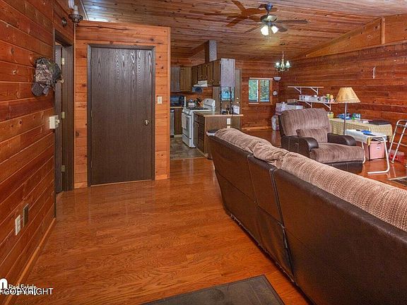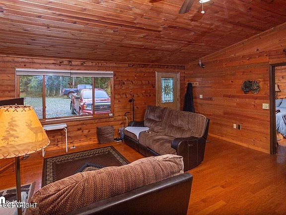 Log ranch home on 1 acre of land. Perfect starter home or home to down size into. Features include vaulted living room, double bathroom sinks, extra large soaker tub, storage shed, fenced in area off the back porch, mature trees, and established garden area. This home is conveniently located near the Menards sports complex, bike paths, and minutes to downtown Wasilla.