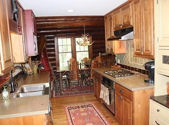 Historic ''Rayburn Caretakers Lodge'' log home on the banks of the famed ''Holy Waters'' section of the Au Sable River. Incredible workmanship with the 1920's Scandinavian, dove tail full log beauty. Recent renovations include metal roofing, new kitchen and counter tops, finished walk-out basement. Full length screen porch, fieldstone fireplace. Most furnished with unique period styled pieces furniture. 5.24 acres with 230' of frontage with a conservation easement.