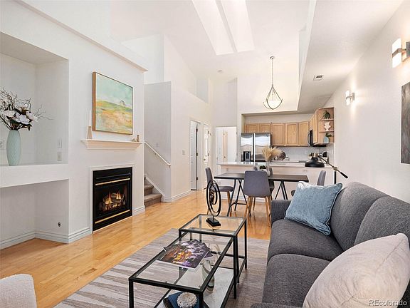 This multi level condo is the perfect place to call home featuring the largest floorplan in the complex and situated on a quiet golf course with wonderful views. As you enter, you'll notice incredible upgrades like new cabinets, new lighting, luxury quartz countertops, newer carpet, and modern stainless steel appliances. Both of the bathrooms have been updated and remodeled with high end tile, new plumbing fixtures and lighting. The Primary bathroom features heated flooring! This 2 bedroom, 2 bathroom property also features an open concept floor plan and high ceilings with natural light thanks to skylights throughout. The remodeled open kitchen flows seamlessly into the living space and allows for casual seating or a more formal area for dinner parties. Relax by the gas fireplace and enjoy the gleaming maple hardwood flooring throughout. The primary bedroom on the main floor can easily fit a king-sized bed as well as additional furniture if needed and includes an ample walk in closet. The secondary bedroom room is located near a full bathroom making it a great option for a roommate or private guest stays. The second floor loft is light and airy and could be an easy conversion to a third bedroom or private office if desired. In this space, notice wonderful French doors that open to the east facing view of the golf course and water feature. Enjoy the convenience of a dedicated laundry room featuring plenty of shelving and included washer and dryer. The attached private one car garage leads directly into the condo for security and features a new garage door opener. This home is situated perfectly in the complex and is walkable to many coffee shops, grocery stores, and community attractions like the Platte River bike path, Bowles Grove Park, and the popular "Main Street" in Littleton. In the summer, enjoy the community pool included in HOA. This is a turn key home with nothing to but enjoy the tranquil lifestyle of low maintenance golf course living!