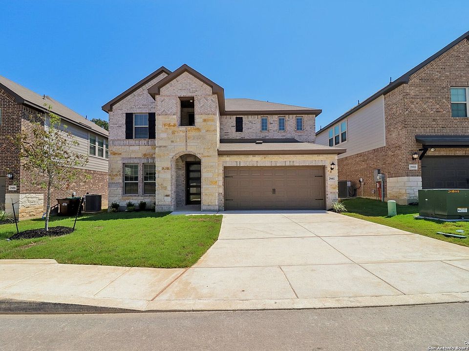 Brand new, energy-efficient home available by Jul 2025! The Evergreen's front flex space and living room with volume ceiling make a striking impression. Tucked in the rear of the home, the primary suite is secluded from the secondary bedrooms and game room upstairs. Starting in the $400s, Fox Falls features brick and stone elevations along its picturesque streets. This community boasts breathtaking Hill Country views and convenient access to I-10 and Loop 1604. Shopping, dining, and entertainment are just minutes away at Boerne Oaks and The Rim shopping centers. Residents enjoy the benefits of living within the highly regarded Boerne Independent School District. Each of our homes is built with innovative, energy-efficient features designed to help you enjoy more savings, better health, real comfort and peace of mind.