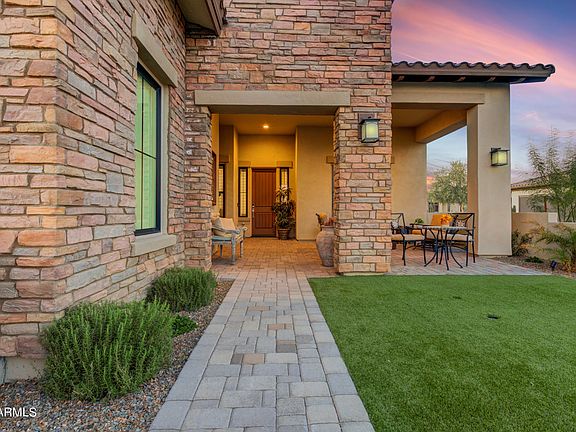 HUGE PRICE REDUCTION! Welcome to your dream home in the heart of Trilogy at Verde River a Premier Resort Living Community! Experience Luxury living in this single-level 3 Bedroom, 3 Bathroom plus Den Montilla Model built by Toll Brothers. Front Courtyard and generously covered porch with views of Four Peaks lead to welcoming foyer with 12' tray ceiling and is flanked by picturesque Den and stately Living/Dining Room that is ideal for entertaining family and guests. Great Room is spacious with large windows that look out onto the large rear covered patio with motorized sun screen.Well-designed kitchen includes walk-in pantry, large waterfall center island, commercial dual fuel range with double ovens, abundant counter space and breakfast area with access to rear yard. Impressive primary be droom features private access to the rear covered porch, dramatic windows and luxurious primary bath, with dual walk-in custom-built closets, glass-enclosed shower with seat, dual-sink vanity, and separate soaking tub. You'll appreciate the attention to detail and luxurious touches that make this home truly special. Custom finishes throughout including all tile floors, Custom Shutters, Sun-Screens, Water Softener and Reverse Osmosis, Epoxy Floors in the Garage and a lot more. True privacy and convenience abound - this home is fit for comfort and luxury, and includes spectacular spaces, including the retractable glass door to covered patio, 20'x20' Ramada with a built-in BBQ, Refrigerator, Gas Fireplace and 75" TV for an effortless outdoor dining experience and relaxation.