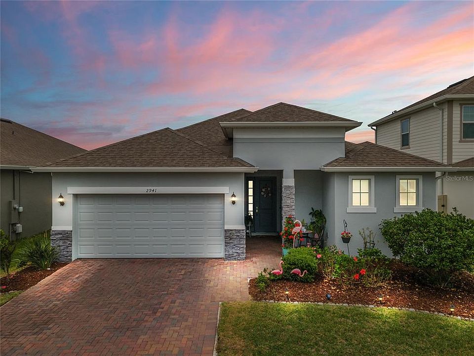 Gorgeous, like new! Only 4 years old home, 4 bedroom 2 bathroom in the gated community of Serenoa Village phase 2. Stepping inside you're greeted by the bright and spacious foyer. Just a few steps further you will see the open floor plan with a large island in the kitchen, stainless steel appliances and 42" cabinets, Quartz counter-top and an over-sized pantry. An open family dining space, 2 car garage, front porch and fenced backyard with planted fruit trees and plenty of space for a future pool. Entering the home, in the main hall to the left you have the garage, drop zone and laundry. To the right, you have the master bedroom with a double sink and upgraded shower master bath, and a big walk-in closet. Kitchen integrated with dining and living room with plenty of daytime sunlight. Living room with a sliding door to the fenced backyard and serving as a hub to the other 3 bedrooms (2 to the right and 1 to the left) and additional bath. Smart home technology which allows you to control your home with your smart device. A community composed of: State of the Art Clubhouse, Resort-style and Lap Pool, Interactive Splash Pool, Covered Lounge Area with Fireplace, Fitness Center with 24 Hour Access, Walking Trails, Dog Park and Playground. Easy access to the Disney parks and commuting to Orlando coming up soon, with a connector road that is currently being worked on. Schedule your showing today to see this well taken care home in a desirable community!