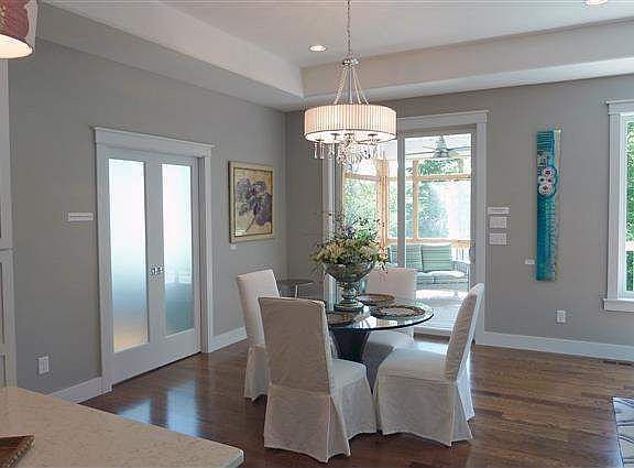 2013 Rocca Parade Home! Luxurious 4 BR + office & workout room, 3 BA walkout ranch backing to pine trees. 9x8 private master sitting area with vaulted ceiling. Sky light in MBA & in walk-in closet. Tiled shower with dual shower heads in master. Wood floors in main living areas & 10' ceilings. Stone detail on FP + built-ins. White painted cabinetry in kit with 42"x8' island, solid surface counters, tile backsplash & Bosch applcs. LL has FR, wet bar with granite, BR 4, workout rm, 3rd full BA & storage rm.