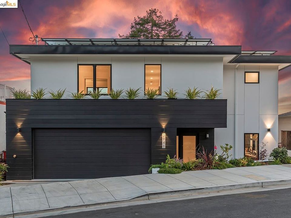 Modern architecture is discovered right here in Oakland’s Lincoln Highlands where innovative design and technological advancements have manifested in 2941 Carlsen Street. A home which transcends mere utility where clean lines, geometric precision, and minimalist sensibilities intersect. Developer Custom Built By Crawford’s commitment to sustainability with a penchant for sleek lines has designed and constructed this home to evoke a feeling of openness and clarity. The down-sloped lot connects a covered patio and lawn, a wildflower meadow, an expansive level field, and a planting garden filled with fruit trees. Incorporating a transparency to the world outside with floor to ceiling windows, one feels connected to nature via a private park below with towering trees that frame expansive views to San Francisco and the bay. Ipe decks, Oak dividing walls and floors, marble tile, quartz counters suggest only premium materials throughout. Both inside and outside, 2941 Carlsen fosters a profound sense of immersion - the minimalist design imbues all three floors with order and calm. Owned solar panels, heat pumps, whole house circulation, and EV charger ready, it’s a home constructed to enhance a quality of life at a convenient distance to a diverse and thriving east bay community.