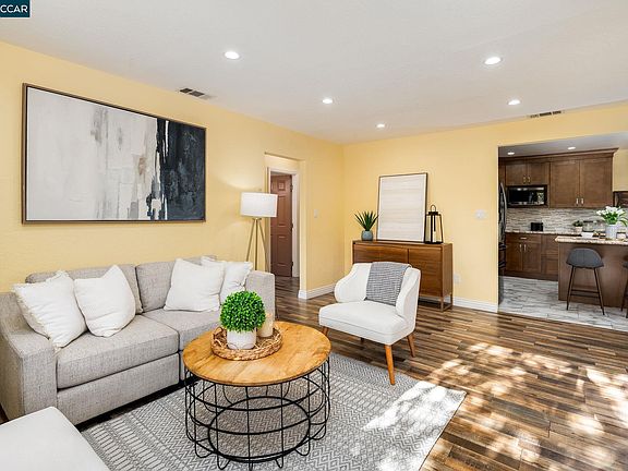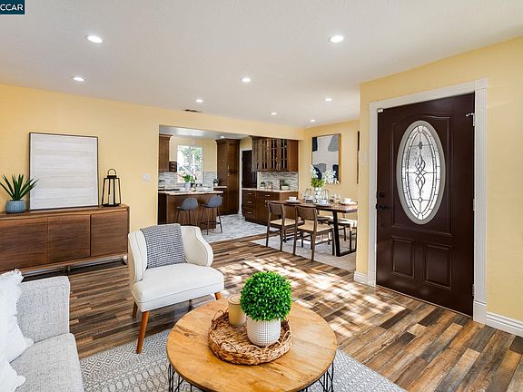 Beautifully updated 4-bed, 2-bath single-level home in the quiet and well-established Crawford Village neighborhood of Concord, offering comfort, stylish finishes, and excellent convenience. The open layout features a bright living area, dining space, and an expanded remodeled kitchen with all new appliances. Interior improvements include new waterproof laminate flooring throughout, recessed lighting, updated fixtures, fresh interior paint, new HVAC system, and new closet doors with built-in organizers. Four well-sized bedrooms provide outstanding flexibility—ideal for first-time homebuyers needing extra space, those seeking multigenerational living, or investors looking for a solid long-term opportunity in a central location. The backyard is a private retreat featuring a heated saltwater pool–spa and multiple dining areas perfect for relaxation and entertaining. Exterior updates include a newer roof and gutters, newer exterior paint, and newer dual-pane windows to enhance efficiency. The finished garage offers clean, functional space for storage, fitness equipment, or projects. Conveniently located minutes from BART, Todos Santos Plaza, schools, shopping, dining, parks, and major commuter routes, this move-in-ready home blends modern updates with a highly desirable location.