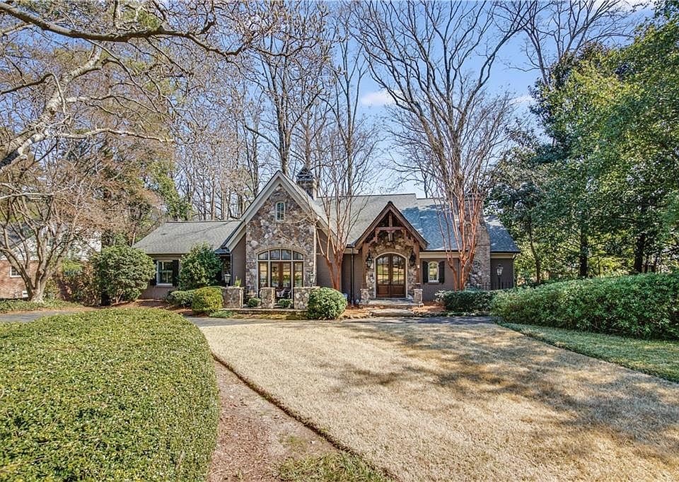 Exceptional single story home renovated by Ladisic Fine Homes in 2001 with architect, Brian Bethea-Smith sited on over a half acre lot that backs up to 4 acres of protected woodlands in sought after Peachtree Park was featured on the cover of Atlanta Homes & Lifestyles magazine. This home is designed for entertaining with an over-sized dining room, two sided fireplace between the living and dining rooms, impressive 26' beamed ceilings, beautiful archways and trim, paneled music niche (perfect for piano) and a spectacular screened-in cedar porch with fireplace, exposed timbers and metal roof. The gourmet kitchen features custom cabinets by Gorrell Woodworks, highlighted with granite and tile backsplashes. Premium built-in appliances include Sub-zero refrigerator/freezer, Viking professional range, double oven, hood and warmer, Miele coffee maker, Asko dishwasher. The Primary Bedroom on main level is a sumptuous suite with beamed cathedral ceiling, gas fireplace, hardwood floors, limestone tiled bath with heated floors, jetted soaking tub, separate shower, dual vanities, large customized walk-in closet. This home also features a sauna for 4 people! The finished basement features a small bedroom with full bath, office area, kitchenette and dining area, movie screening area with 4 luxurious stadium seats, projector and 108" screen and a large unfinished storage area Additional features include two water heaters, built-in speakers, NEW roof (Nov 2023), landscape by Scapes Design, waterfall feature and pond, mature trees with up lighting and down lighting, full irrigation metered separately, fire pit, rock walls and stone pathways. This home is a MUST SEE one of a kind that feels like a sanctuary in the middle of the City. Walk to Peachtree Park with playground, community garden, nature trail, Bynum Bridge Park (connects the neighborhood by walking bridge to Lenox Mall, shoppes and restaurants). The original home was constructed in 1951. It was renovated and expanded in 2001.