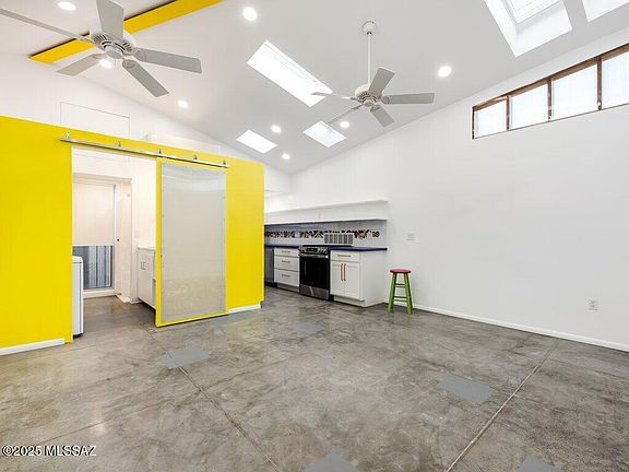 Flooded with natural light from multiple skylights, this newly rebuilt contemporary home offers a sophisticated blend of style and comfort. High ceilings and an open floor plan create an airy, gallery-like ambiance, enhanced by polished concrete floors and striking artistic accents. Every detail is brand new--from the sleek modern kitchen to the impeccable finishes. The property is privately enclosed by a security wall with gated entry and designer landscaping. Ideally situated in the historic Sam Hughes neighborhood, near the university, shops, and bus lines--yet tucked away in a quiet, sought-after area--this home delivers luxury, convenience, and peace of mind.