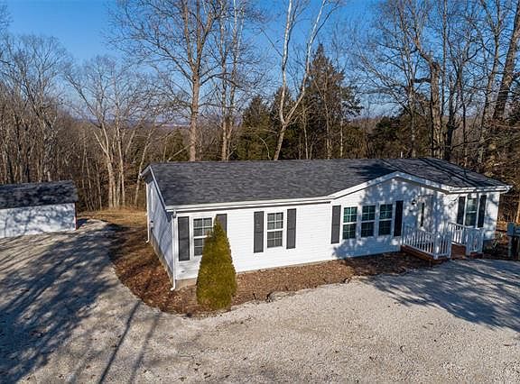 MOVE IN READY!! This completely renovated 3 bedroom, 2 bath home boasts a beautiful open floor plan, with vaulted ceilings, new Pella windows, new 6 panel interior doors, new roof, new HVAC system, new appliances, new flooring throughout, and the list goes on!! This home offers a split floor plan, master suite, breakfast bar, and separate laundry room. Enjoy morning coffee on the large covered deck while taking in the gorgeous views of the 1+ acre private lot surrounded by trees. There is a circle driveway with plenty of parking spaces and a storage shed included. This home is conveniently located less than 1 mile from Hwy A, putting you close to Interstate 55, restaurants, stores, family entertainment, and more!!