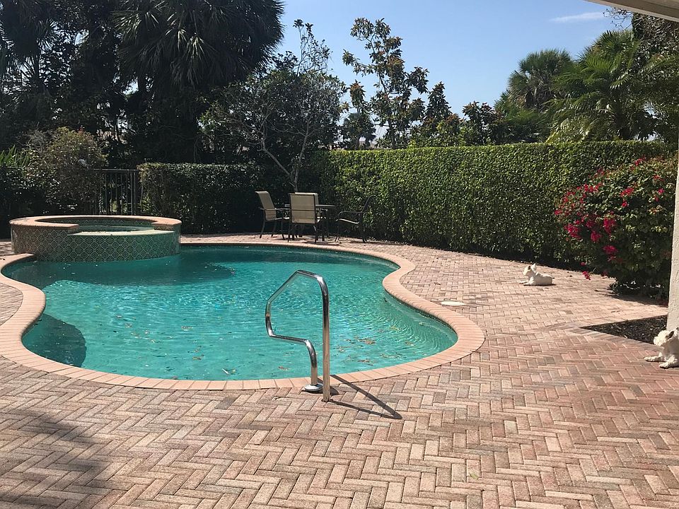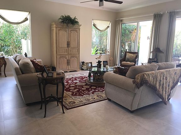Beautifully furnished and landscaped home in Palm Beach Polo Club. Available 1 June - October 30. Private setting, spacious bright, open floor plan over looking pool, hot tub and golf course. Large paved terrace with overhang for outdoor dining. Well mannered small dog welcome! Back yard fenced in.Two bedrooms each with private bath one with door to pool access. Two car garage. Great ambience! $2450 per month includes utilities! All Utilities included. Water, pool maintenance, HOA fees etc...