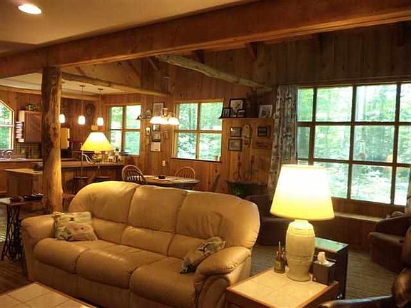 Beauty & tranquility are what youll find w/ this amazing lake home. Property includes approximately 28 acres of land & 12 acres of the lake. Only one other home owner on the opposite side of the lake makes this a private get-away or year-round home. Enjoy lovely views of the lake from several vantage points in the home or sit out in the 11x14 screened deck which overlooks the lake. An 8X11 open deck is great for grilling & taking in the scenery. Fish for bass in the lake or watch osprey and eagles catch them. An abundance of wild life surrounds you. Open floor plan features a great room concept w/ bedrooms in the loft. Wood stove in living room adds warmth & ambiance. 3/4 bath in 2nd floor features granite tile & birds eye maple. Large main floor bath was renovated in 2011 & doubles as the laundry room. Most of the newer plumbing is Pex. Home has lots of closets & storage. 11x21 work shop could be converted into a main floor bedroom. 7x9 entry way features nice looking & convenient brick floor. Exterior power washed & stained 3 years ago. 1-car garage by the road, 2 sheds, and there is a cleared area in the yard that would be a great spot for you to put up a pole bldg.