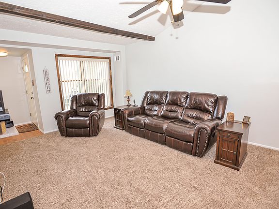 Looking to downsize or just starting out this end unit ranch townhouse has so much to offer. Located on a cul-de-sac this 3 bedroom 1 bath home has been well maintained. The Living Room and Dining Room and Kitchen and small bedroom have been freshly painted. New carpets we installed in the Living Room, Dining Room, Hallway and Small Bedroom. The Living Room and Dining Room have Anderson windows which let in the morning and afternoon sun. The vaulted ceiling extends from the Living Room into the Dining Room. The bathroom was updated several years ago along with the kitchen which has light colored cabinets and a large pantry for storage. The kitchen is large enough for a small table for a quick meal or for a more formal meal, there is a formal Dining Room. There are ceiling fans throughout the house. The laundry room is located off the kitchen and has shelving for even more storage. You can exit thru the kitchen for the fenced in back yard. There is a large shed in the yard which is perfect place for all of your outside yard tools. There is a gate that leads you to the enlarged driveway on the side of the yard. Plus there is an additional driveway in the front of the house. The HVAC system was recently replaced and all the appliances stay.
