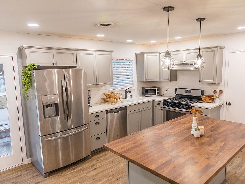 LAST PRICE DROP BEFORE MOVE! Come and See this Stunning Open Concept Renovation Completed Only 1 Year Ago! New HVAC, Flooring , Etc. Quartz Counter Tops, Huge Butcher Block Island-Seating for Eight! Both Baths are Custom & Beautiful. Don't Miss Out Showing Your Clients this Amazing Home! Large Back Yard for Kids & Animals. Back Covered Patio is Awesome! {Great Neighbors}
