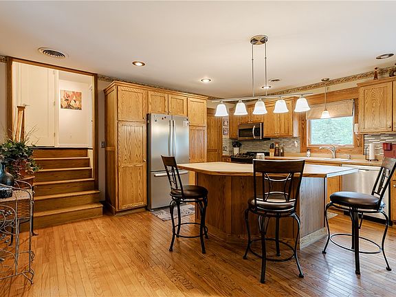Welcome Home!! This split level home offers both comfort, coziness and quality throughout!! Sitting on a 5 acre beautiful lot, you've got plenty of room! Upon entry of the home you will immediately note the quality and craftsmanship of the beautiful hardwood floors and stunning woodwork throughout the first floor open floor plan. Heated floors in upstairs bathroom. Updated wood burning fireplace with blower to keep the house cozy on those brisk days. And central air keeps the home cool on those hot summer days! First floor Laundry!! washer/dryer are negotiable!. Step outside and Take a seat on the back deck and enjoy the peaceful country views of this gorgeous back yard and there's plenty of storage in the 40' x 40' Pole Barn (built in 2009) with separate driveway. Join us at the Open House, Saturday, 7/8 from 1-3 pm. Delayed Negotiations until 7/13 @ 2pm