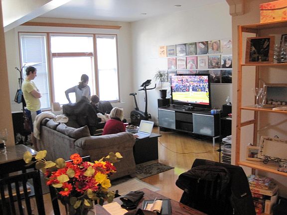 Architect-designed and detailed first floor apartment with unobstructed daylight in every room. Complete gut rehab in vintage 3-unit building with central air/heat, in-unit washer/dryer, private deck and access to roof deck and basement work and storage room. Near Racine and Oakdale. Walk to Wrigley Field / Southport Corridor / Boystown / Whole Foods / DePaul University / Roscoe Village Three blocks from "L" stop Contact Nils....Available July 1 LIVING ROOM: Hardwood floors and millwork Wood-burning fireplace 10-foot ceilings DINNING ROOM: Open to living room perfect for entertaining Harwood floors Indirect lighting around wood ceiling GOURMET KITCHEN/SUN ROOM: Plenty of cabinets Ceramic tile floors Downdraft range w/grill top Access to balcony and deck MASTER BEDROOM: 10-foot ceiling Berber carpet 8-foot plus wide closet BEDROOM 2/DEN: 10-foot ceiling Berber carpet Built-in shelves and storage Perfect for home office MASTER BATH: Ample built-in storage Ceramic tile floor Washer/Dryer BATH 2: Ample built-in storage and medicine cabinet Ceramic floors Cats Ok No Dogs, please.