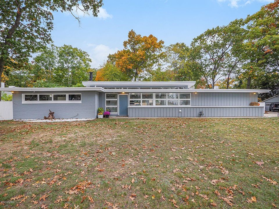 North Muskegon convenient location to shopping, schools and restaurants within 5 blocks. Open floor plan with stone fireplace, large amount of beautiful natural lighting. Dramatic vaulted ceiling. 3 bedroom with 2 full baths. 1 attached and separate 2 car detached garage on almost an acre lot. Newer forced air furnace 2017 and 2020 new A/C /Heat Bryant mini split air system. Large sitting deck with fenced back yard - very private. Roof newly seal coated and in good condition.