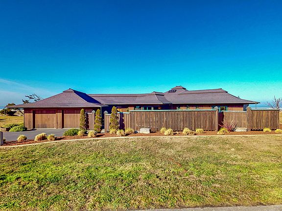 Meticulously Crafted Oceanfront Home, with views over Mad River and Pacific Ocean to Trinidad Head. Quality of this kind is rare. Blending beautifully into the natural coastal landscape, this gorgeous architect designed home welcomes you with stunning views, private yard , deck and koi pond. No detail has been overlooked to produce a unique, light-filled oasis of serenity. Cabinets and doors recall Old World craftsmanship, with beautifully detailed moldings , all in hand-picked character alder. Black granite counters , copper farm sink, and top of line Viking appliances continue the ambiance in the kitchen, with convenient breakfast bar. Comfortable elegance in the formal dining room, also sporting fantastic water views, and a large, open Family room, generously sized for (More)