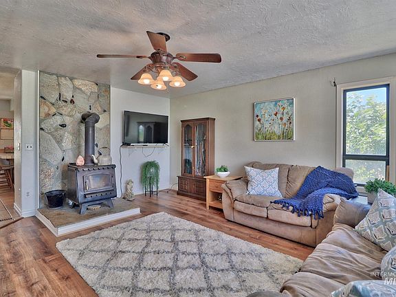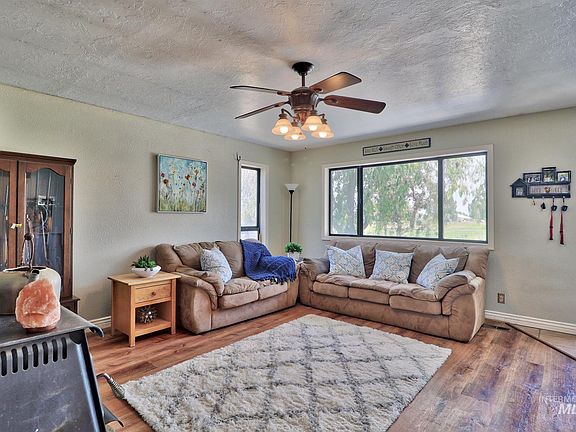 Quiet country property with freshly painted exterior. Cute 4 bed, 2 bath, 2.45 irrigated acres plus a 36' x 24' insulated shop with electricity. Separate art studio/office with sauna. New hay shed, new master bathroom, flooring, new toilet in main bath,new garbage disposal and flooring in living room. Property also includes: 2 wood burning stoves, fruit trees, large deck, lean-to with pens, gated pipe for irrigating and fence posts placed around pasture. RV parking, new chicken coops