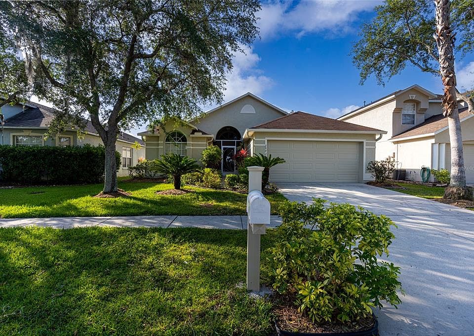 This amazing 3 bedroom 2 bath home is the one you have been waiting, located in Meadow Point 1 there is no HOA and a very low CDD of $611 a year. As you enter the home you will fall in love with the very open floor plan with distinctive space. You will be greeted by a very large living room and dining room with high ceilings and the many windows in the home bring in a lot of natural light. Going thru the arch way to your right is the large eat in kitchen, with a lot of cabinets and counter space, there is a large window where the kitchen table goes. The kitchen opens into the family room with sliders for a beautiful view of the back yard. Family room has high ceilings and is a wonderful place to relax, with sliders leading to the screened in lanai. The home is the perfect split floor plan with the master bedroom off the family room and offers a large walk in closet and master bath with soaking tub, dual sinks and walk in shower. The other two bedrooms are in the front of the home off the living room and share a full bath. The back yard is a good size and the neighborhood has side walks and is close to great shopping, hospitals and the interstate. Meadow Point offers a wonderful club house with pool, playground, basket ball courts, fields and so much more. HOT WATER HEATER 2023, A/C 2015, ROOF 2014 exterior paint 2023.