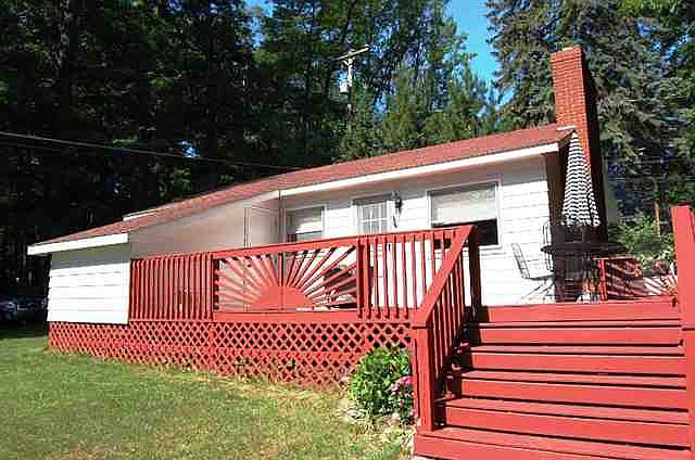 Higgins Lake Private Lake Access with boat docking and beach rights Minto Point Association. Share 96' of frontage with just 12 other homes. Cozy 2 possible 3 bedroom 1 bath cottage featuring classic knotty pine interior, cut stone wood burning fireplace. 3rd home of the lake with fabulous views of Higgins lake from the home and spacious deck. Annual Association dues $200 Summer 2011 tax $614.58 Winter 2010 tax $441.53 (taxed as a homestead) 1 boat slip and 1 jet ski per home available.