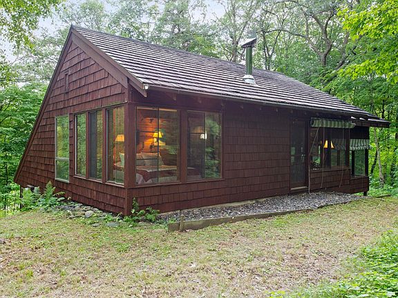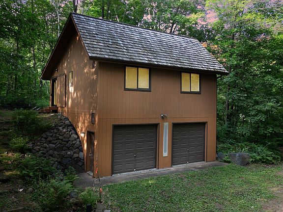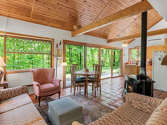 Escape to your private retreat on 80 serene acres of lush woodland, adjacent to Straight Lake State Park and its extensive trail system. The Ice Age Trail is also just down the road. The picturesque Trade River beginning from springs on the property and seasonal ponds in the forest combine to offer endless opportunities to immerse yourself in nature and observe local wildlife. Built in 1979, the cozy cabin exudes rustic charm yet has modern touches like a vaulted ceiling and passive solar design. Screened porches and an attached but separate bedroom with two walls of windows yield 360 degrees of view into the mature open forest. The double garage is generous in width and extra long. Above the garage, you'll find a spacious studio with heat pump heating and cooling, complete with a convenient half bath and wood stove. Most furnishings are included in the sale, making it easy to move in and start enjoying your new home right away. Whether you’re seeking a peaceful weekend getaway, a private deer and turkey hunting reserve, or a year-round residence, this property provides the perfect blend of tranquility and convenience. The land is subject to a conservation easement held by Landmark Conservancy, so you will play a key role in preserving this ecological gem forever. This private conservation easement is not open to the public and still allows for additional building within a 5 acre area. Experience the perfect blend of seclusion and accessibility—this retreat is ready to become your personal haven.
