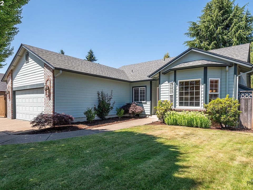 Single-level, Wiechert Custom built home in highly-desired Santa Clara neighborhood. Dry Creek features two spacious living areas. The front room features high ceilings and a gas fireplace. The kitchen is open to the secondary living room, with a slider to the backyard. The primary suite features a walk-in closet and jetted tub. Recent updates include kitchen appliances, engineered hardwood floors, and water heater. RV parking and tool shed too!