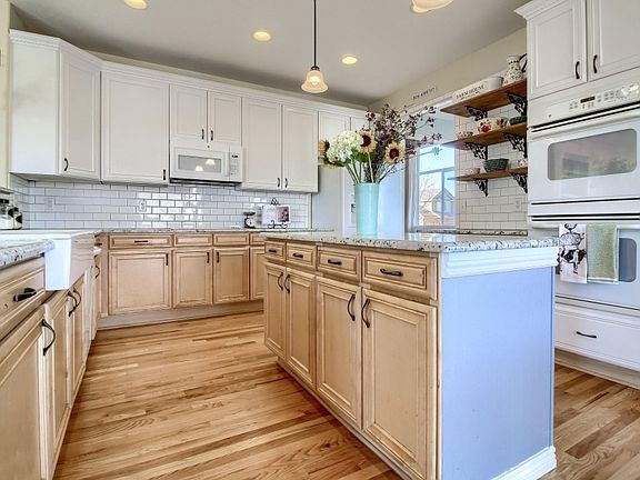 Highly desirable floor plan in Cherrywood Park on a south facing lot with 3 car garage, mountain views and a walk-out. The hardwood floors were recently refinished and there is wonderful molding throughout. The kitchen is open with tons of work space, open shelving, cabinets, slab granite counters and an island. Additional windows were added to bring in great sunlight. The large family room has surround sound speakers and a gas fireplace. Upstairs boats 4 bedrooms and 3 bathrooms with new carpet. The master is large and includes a 5 piece bath retreat and walk-in closet. One room has it own en suite bath and the other 2 share a jack-n-jill bath. The full walk-out basement provides a lot of room for additional living. The yard was leveled to make a great play area, swing set included, garden area, plus a ton of beautiful rose bushes! Don`t miss this great home, it won`t last long.