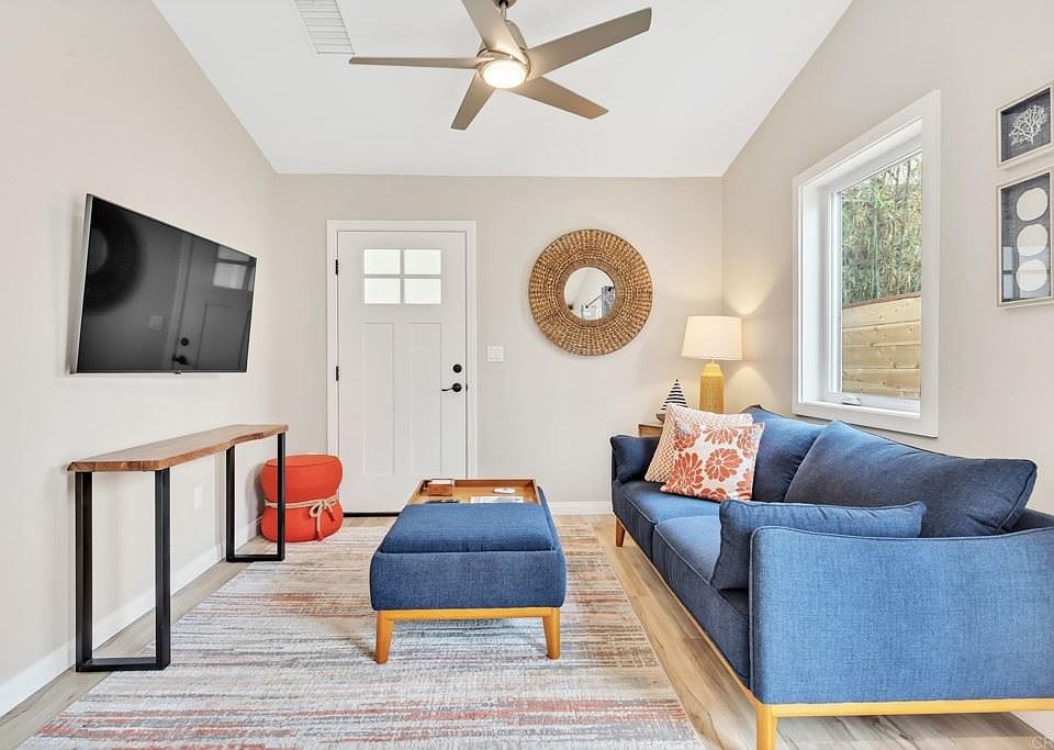 Brand new 2bed 1bath ADU with its own private fenced outdoor space in the heart of lively Carlsbad Village. This home is 3 blocks from the buzzy restaurants of State Street and 10 minute walk to the beach! The property has everything needed for a fun day in the sand. Use of beach wagon, chairs, umbrella and boogie boards. The house has A/C as well as a brand new fully equipped kitchen with gas oven and basic condiments. Each bedroom has a queen size bed with a new mattress and assortment of pillows. The living room has a comfortable couch and 50 inch TV for streaming. Dedicated parking space for one car with additional street parking available.