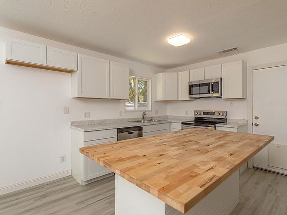 The hard work is done! Move in and enjoy this tastefully updated 3/2 on a large City lot. Kitchen is the focal point the moment you enter, butcher block island, new cabinets, counter tops with SS appliances and sink! So many updates like new flooring throughout, renovated guest bathroom, updated windows and a new roof. The central heat and air will keep you comfortable all year long. The back yard is expansive, sit on the patio and enjoy the mature landscape, fire pit and privacy. Alley access makes any future improvements or RV parking easy. Hard to find a 3/2 under $300,000! A must see.