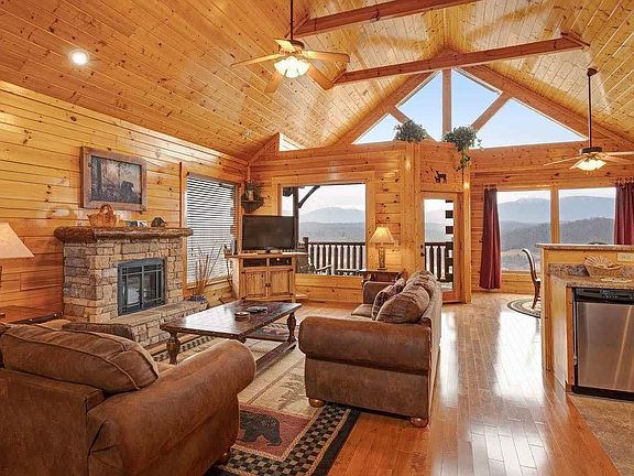 This breathtaking spacious upscale log cabin has some of the most awe inspiring views of Mt. LeConte! The feeling of floating on the "Edge of Forever" combined with prime location means you're only minutes from Dollywood and the Parkway in Pigeon Forge. Luxury top of the line features, tongue and groove throughout, dramatic walls of glass, soaring cathedral ceilings with gleaming hardwoods, ceramic tile- perfect finishes! Play a game of pool or have a rejuvenating soak in the hot tub, relax in the master suite with large Jacuzzi then have that gourmet dinner and evening alone. Nothing will disappoint you about this cabin! Super for investment if want to use as a rental in a very popular resort- Legacy Mountain