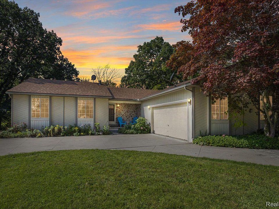Discover the perfect blend of comfort and space in this charming ranch-style home nestled on a sprawling 5-acre lot in the serene community of White Lake. Boasting 3 generously sized bedrooms and 2 full baths, this home offers ample room for a growing family or those seeking peaceful country living. Step inside and be greeted by a spacious family room, complete with a cozy wood burner, where you can relax and unwind during the chilly Michigan winters. The open-concept layout allows for seamless entertaining and a warm inviting atmosphere. As you explore further, you'll be delighted to find a partially finished walk-out basement, complete with an additional bathroom, offering endless possibilities for recreation, a home gym, office, or even a guest suite. For those who love the outdoors, the 5-acre lot provides ample space for gardening, playing, and enjoying the beauty of nature. Plus, there is a huge pole barn (30x40) on the property, featuring heat, electricity and water. This versatile space is perfect for storing your tools, vehicles, or pursuing hobbies. With its picturesque setting and a wealth of amenities, this home truly offers a peaceful retreat from the hustle and bustle of everyday life. Don't miss your chance to make this beautiful property your forever home.